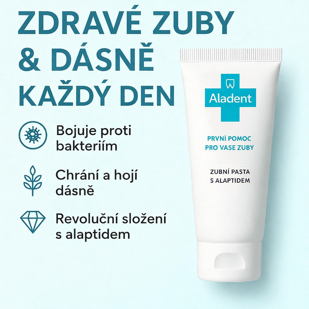 Bojujte proti paradentóze i Alzheimerově chorobě pomocí Zubní pasty s aleptidem - poskytuje vašim dásním nejúčinnější ochranu a prevenci proti bakteriím v dutině ústní. Jedinečný alaptid ničí také bakterii Porphyromonas gingivalis zodpovědnou za vznik paradentózy. Nejnovější výzkumy potvrzují, že je tato bakterie zodpovědná i za vznik Alzheimerovy choroby. Proto poprvé v historii zubní pasta preventuje i toto onemocnění.